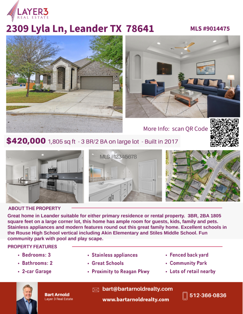 Excellent schools…Akin Elementary, Stiles Middle School, Rouse High School